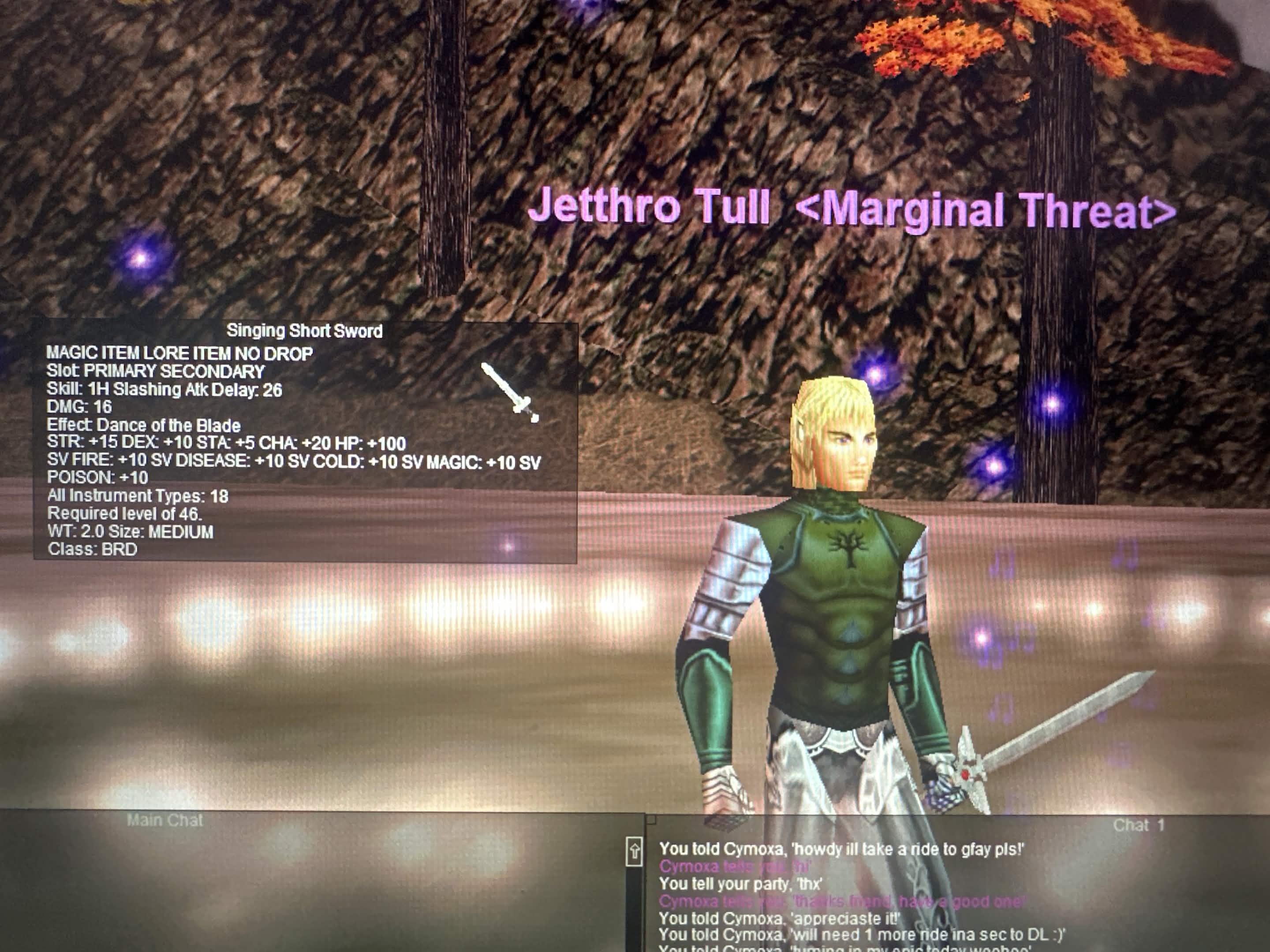 We also went out and beat up ol’ Lady Vox, but alas no scale. Next time! Nothing better than seeing our bards get their epics. We hit up VP for some competitive dragons in there and finished the night with some classic content, Nagafen and ol’ Noble Djorno who had to face the return of Pyrobooze and Green server’s first Sceptre of Destruction.